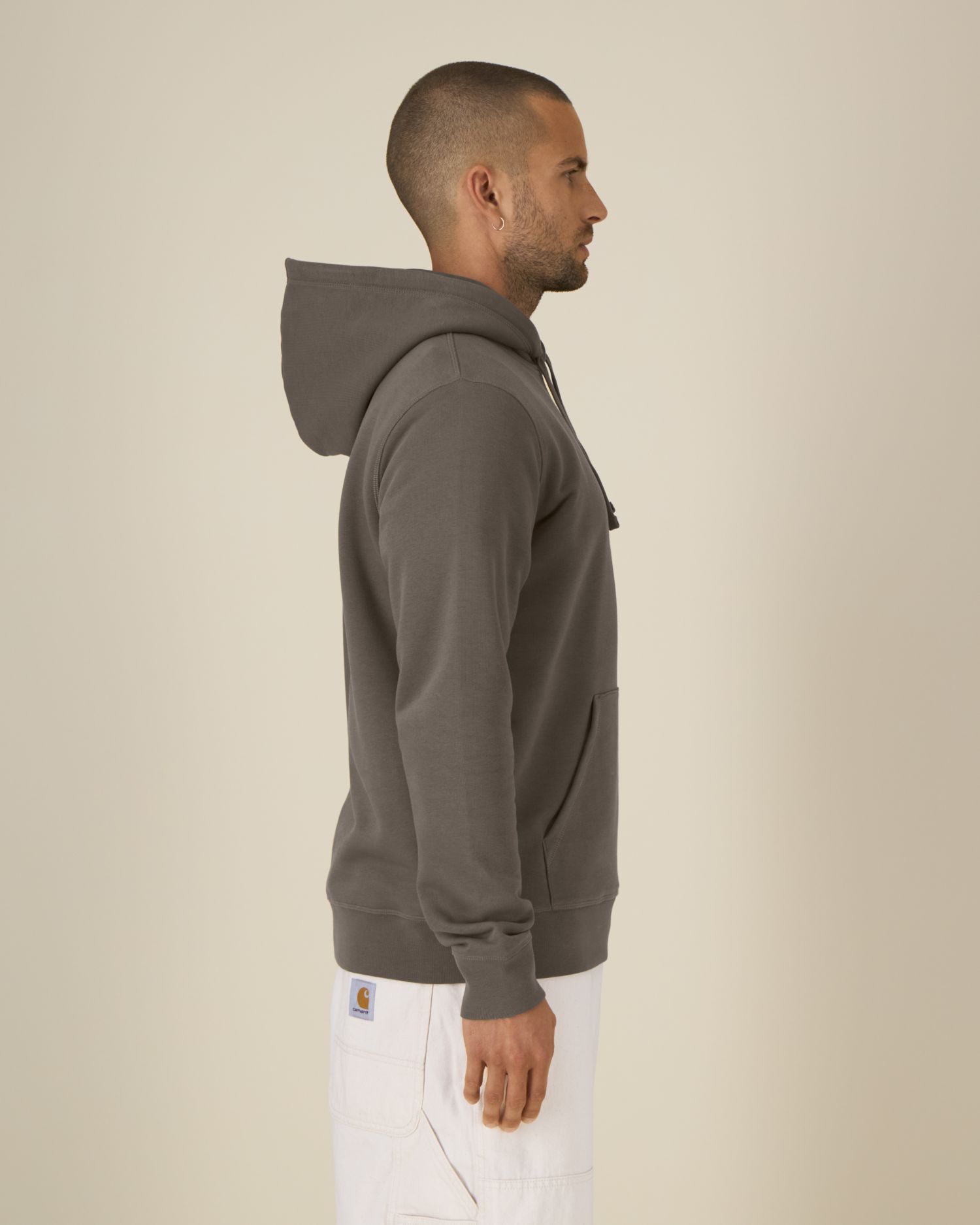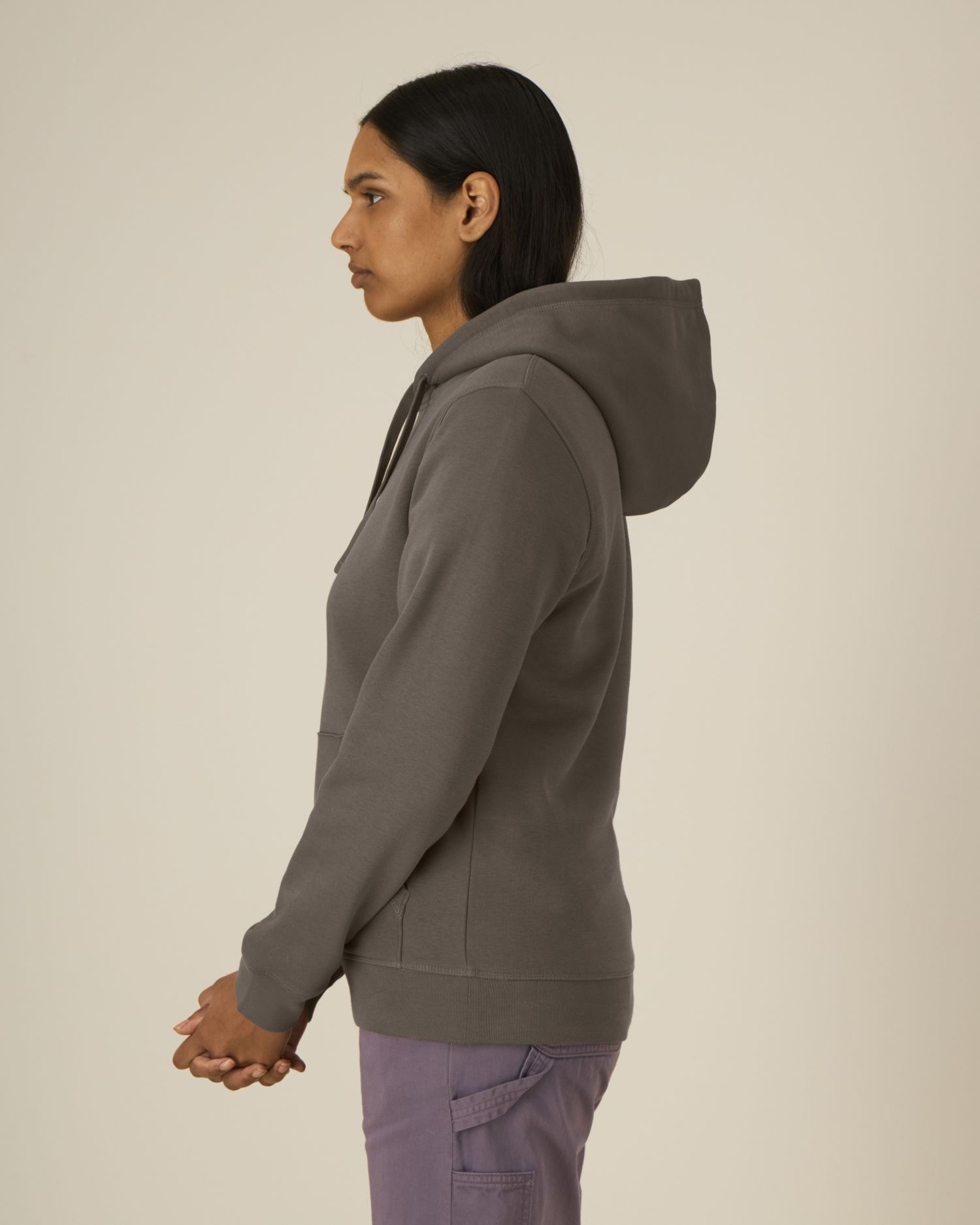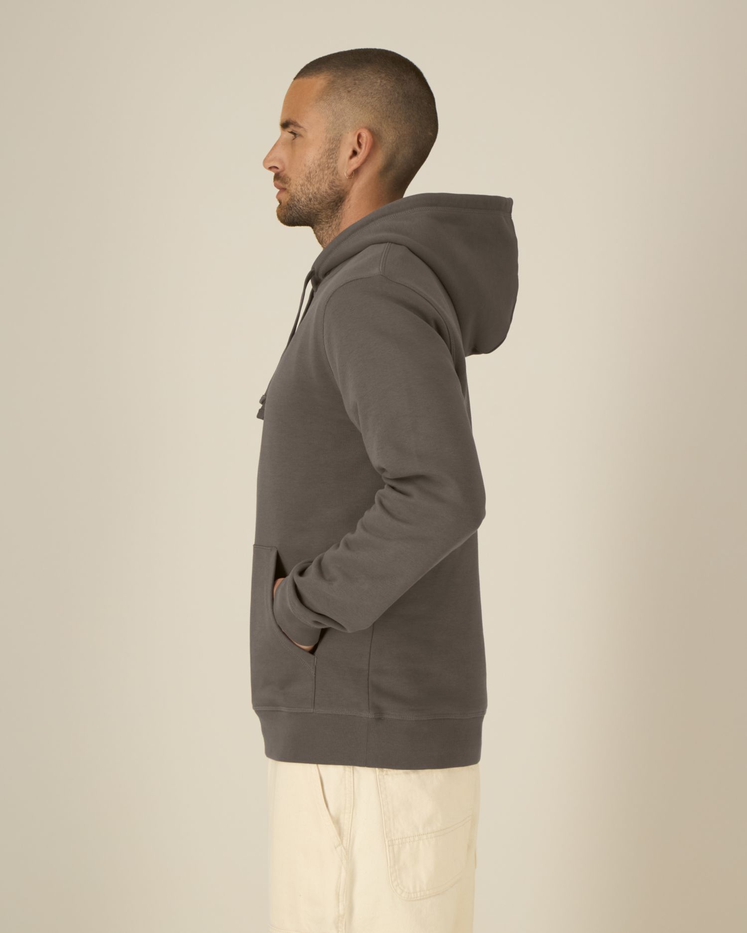 Kangaroo pocket with flatlock topstitch